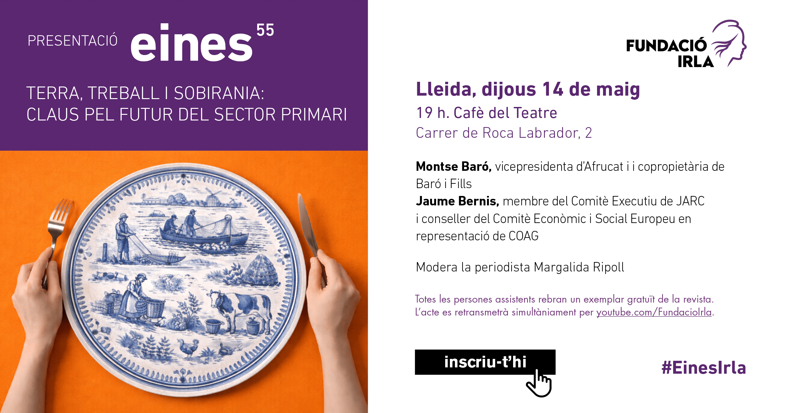 Per assistir-hi, cal inscriure’s prèviament. També es podrà seguir en format online pel canal de Youtube de la Fundació o via xarxes socials amb l’etiqueta #EinesIrla