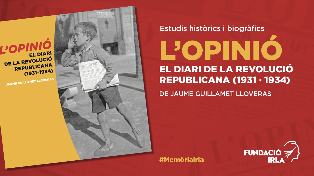 La Fundació Irla ha presentat L’Opinió, el diari de la revolució republicana (1931-1934), l’estudi inèdit elaborat pel periodista Jaume Guillamet sobre el diari L’Opinió, el primer òrgan d’Esquerra Republicana, nascut com a continuació del setmanari L’Opinió (1928-1931), editat i sostingut pel mateix propietari Joan Casanelles, que té més endavant el suport personal i econòmic de Josep Tarradellas.